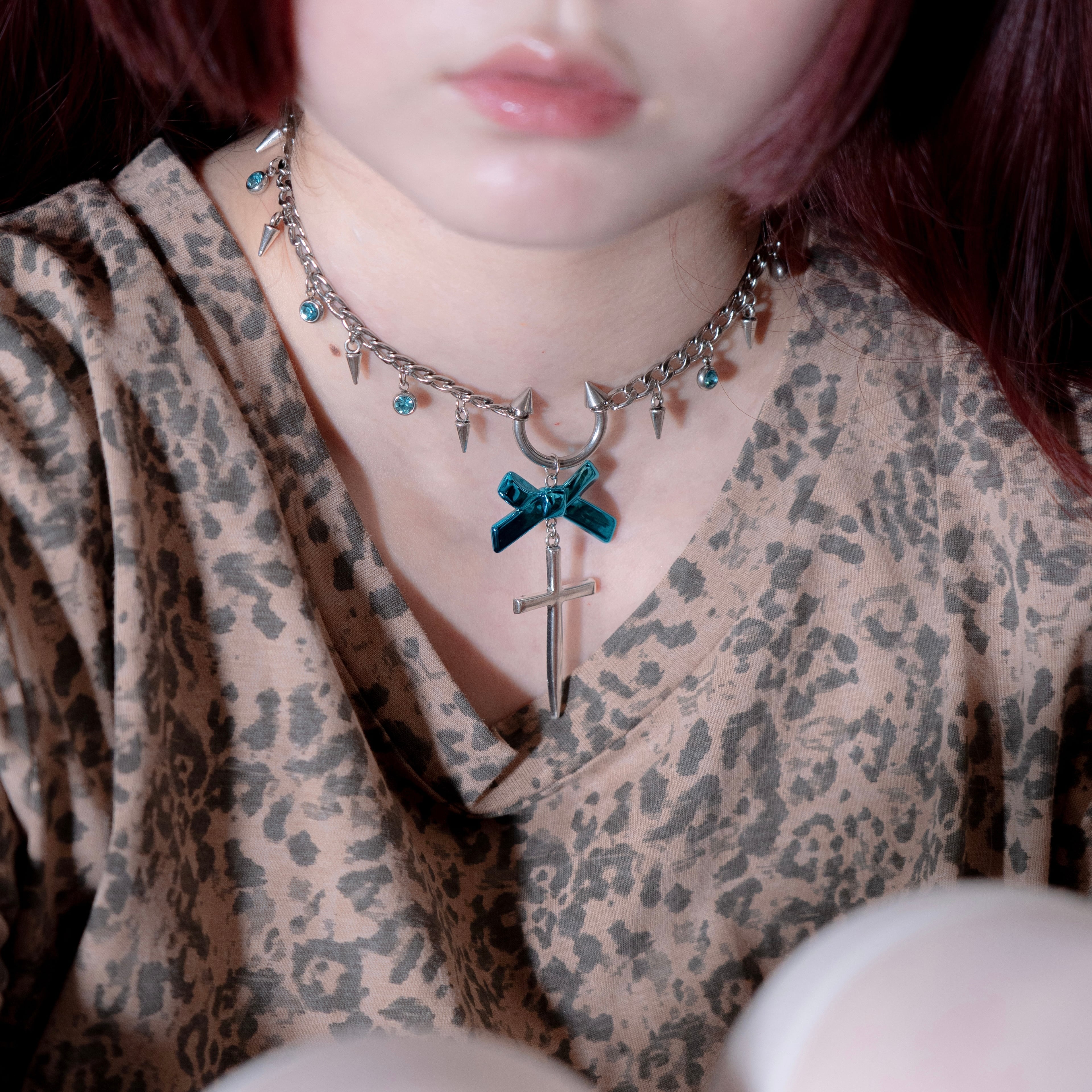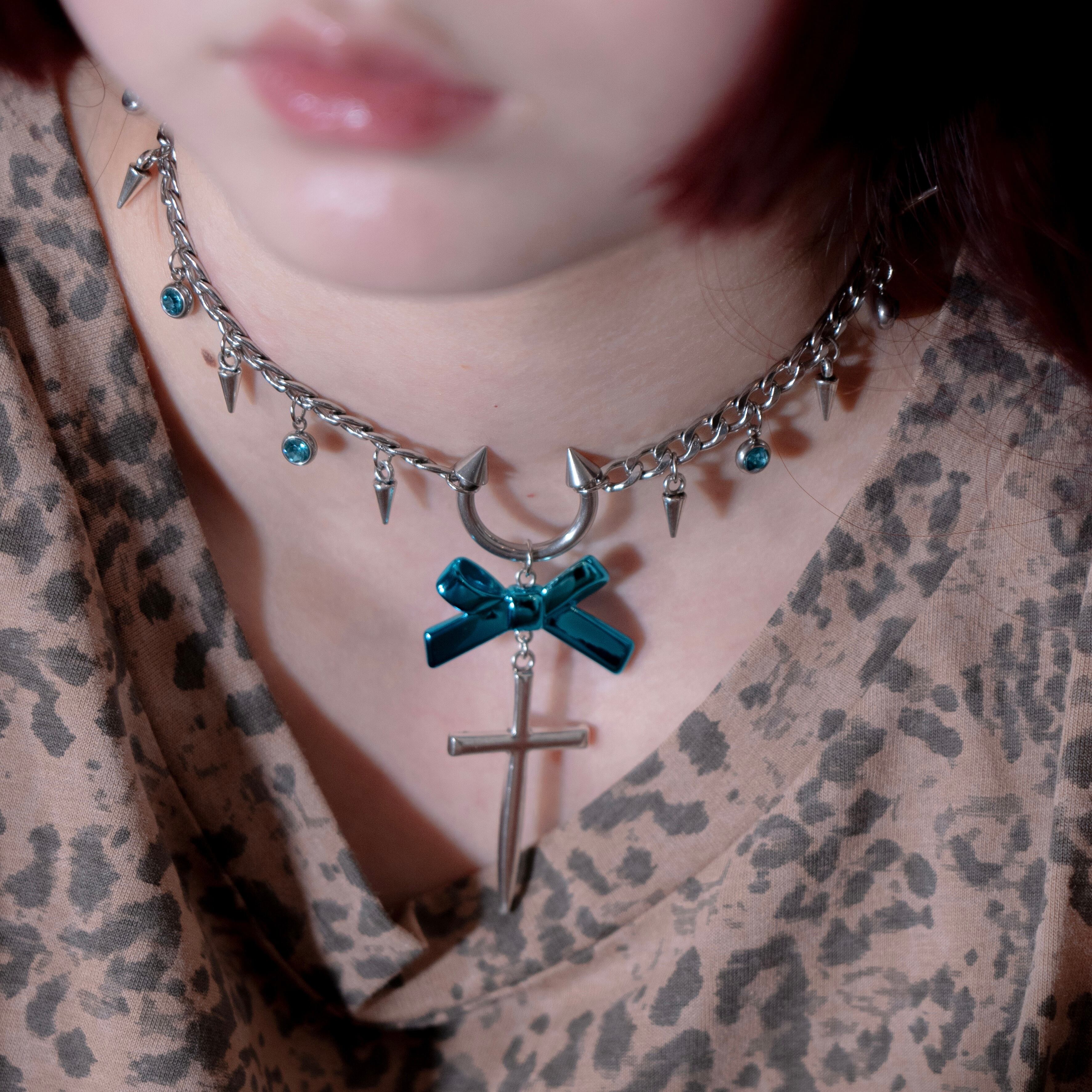カラーを使用したネックレスは1つ持っておくとコーディネートの幅が広がります。