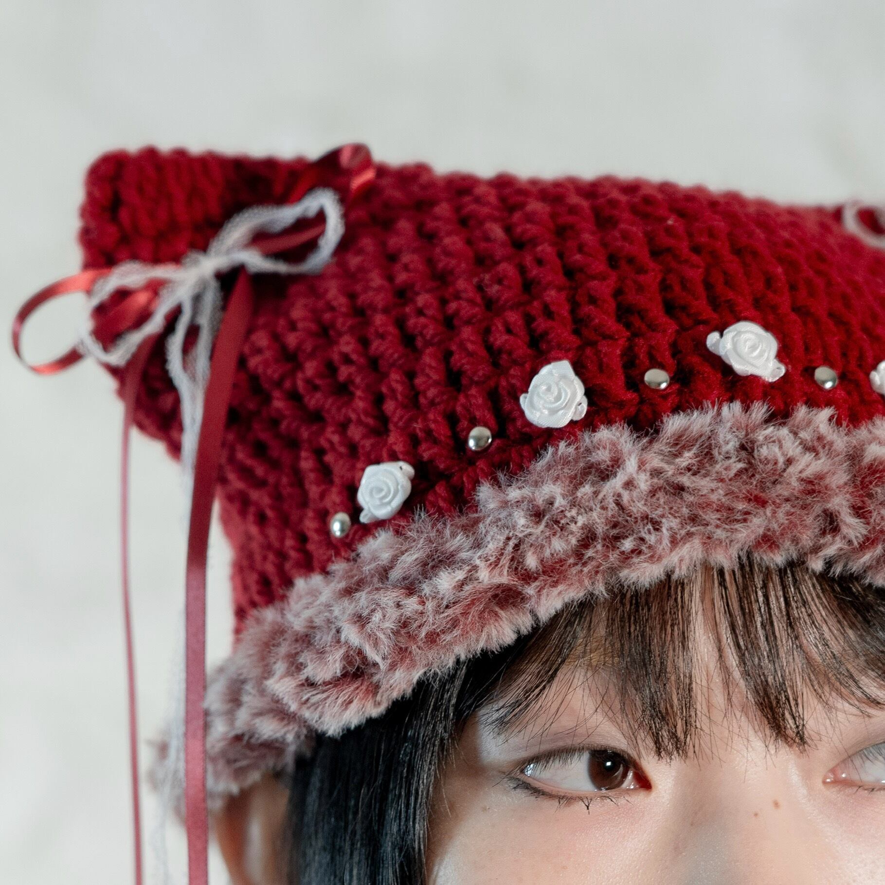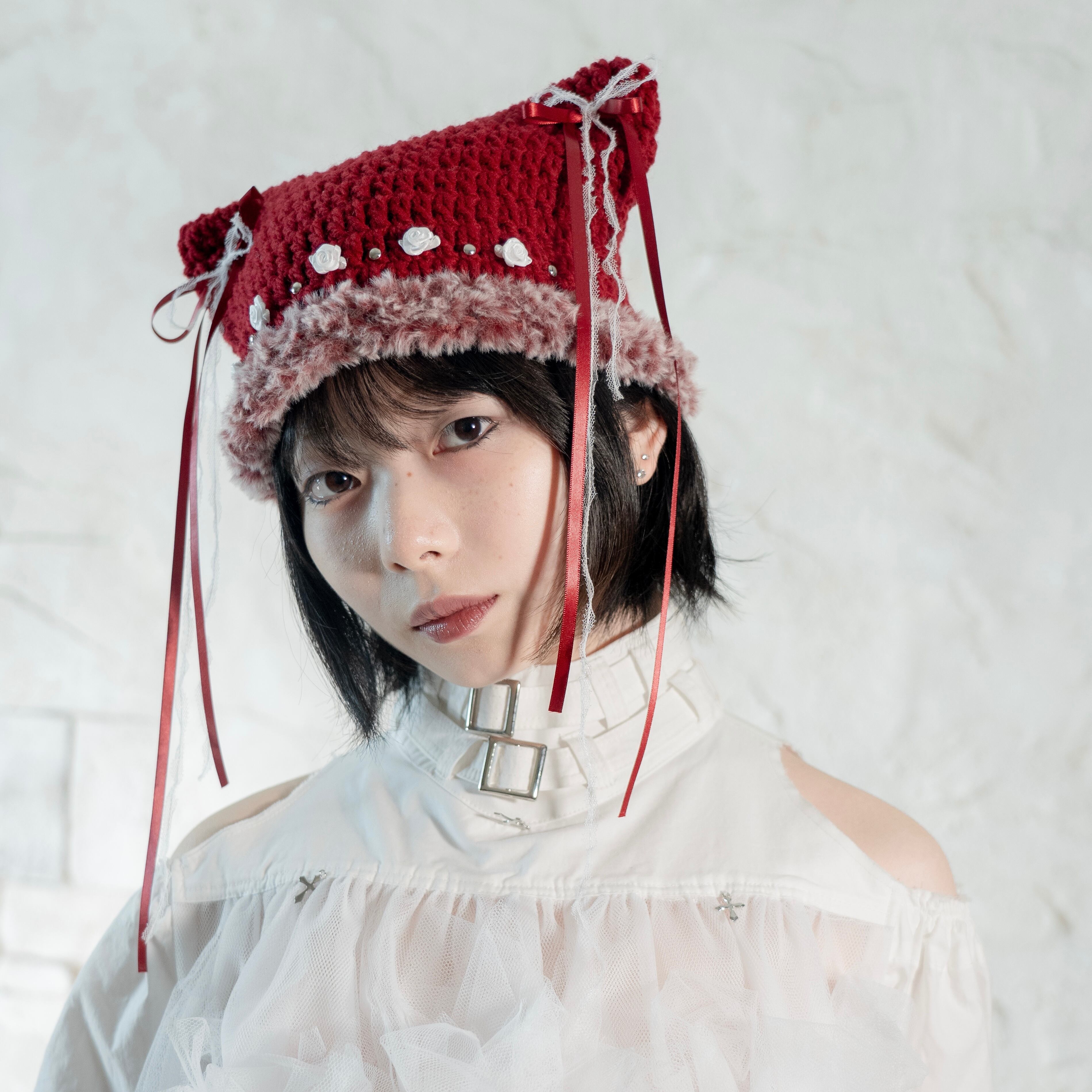 ROSE BOUQUET CAT BEANIE ♰ BURGUNDY